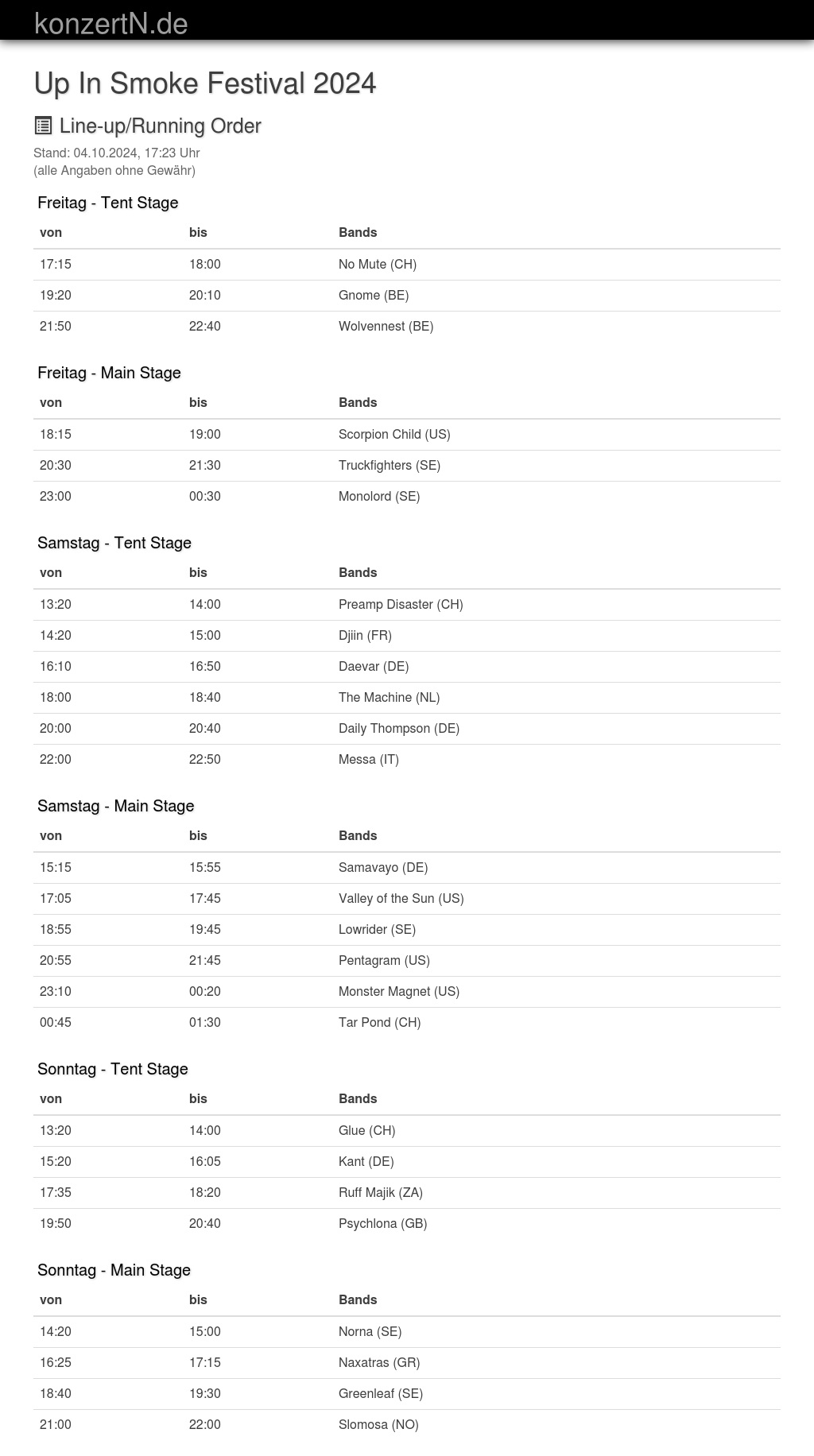 | 23:10 | 00:20 | Monster Magnet (US) | |