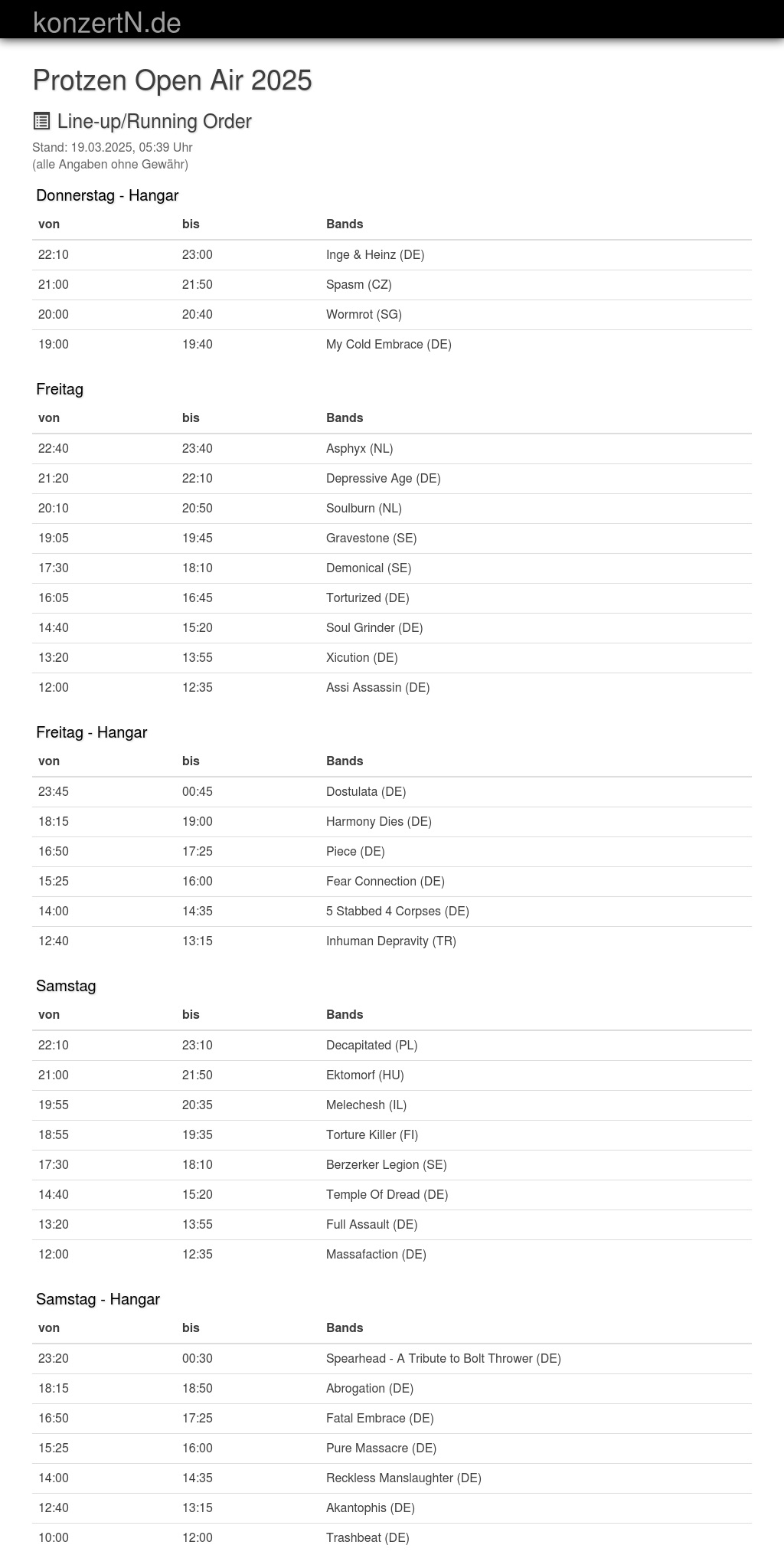 | 23:20 | 00:30 | Spearhead - A Tribute to Bolt Thrower (DE) | |