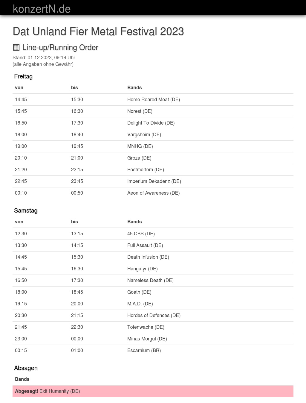 | 22:45 | 23:45 | Imperium Dekadenz (DE) | |