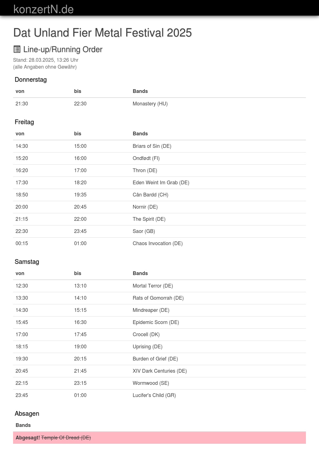 | Abgesagt! Temple Of Dread (DE) |