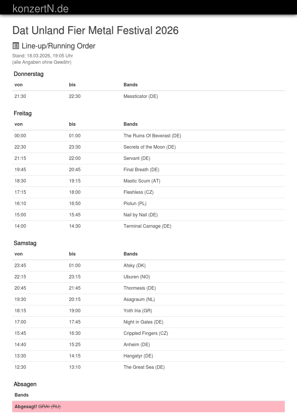 | 19:45 | 20:45 | Final Breath (DE) | |
