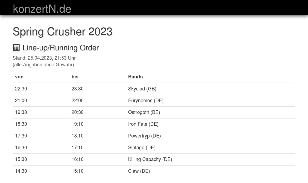 | 18:30 | 19:10 | Iron Fate (DE) | |