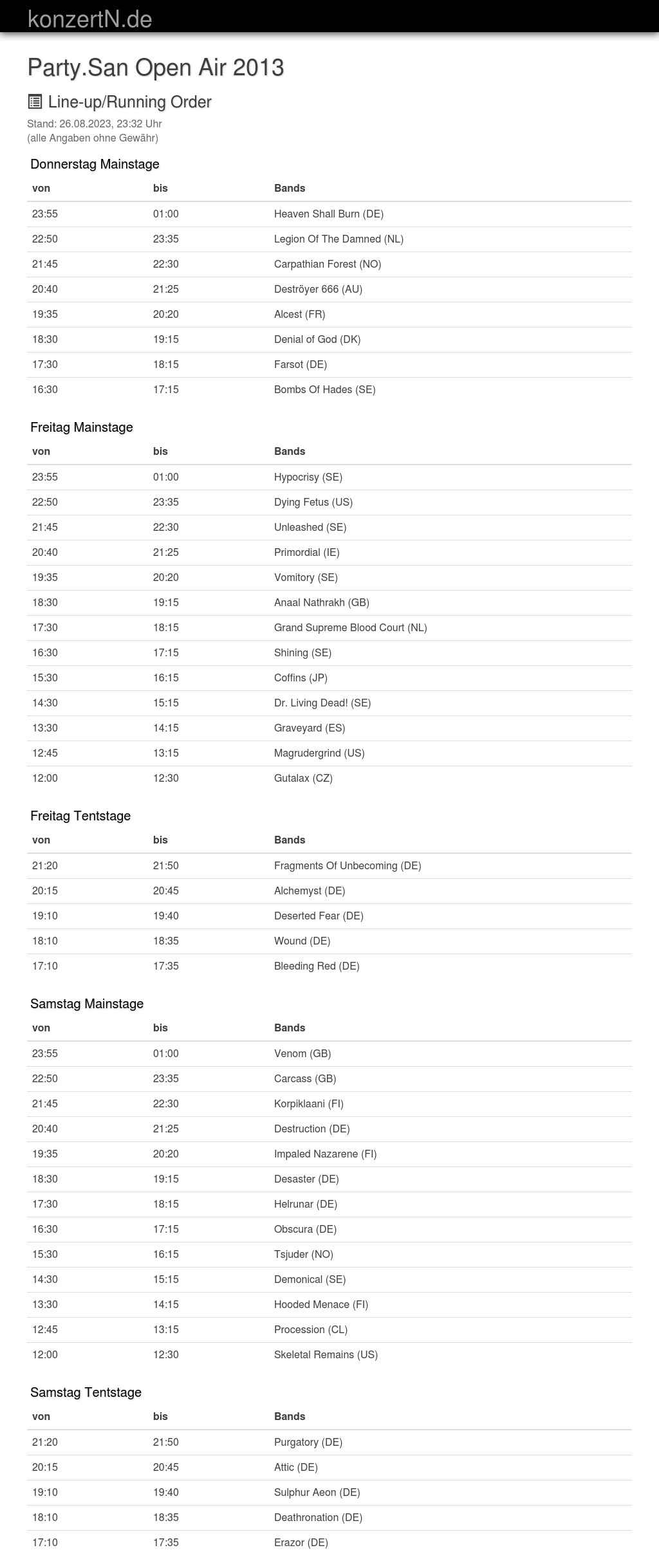 | 23:55 | 01:00 | Heaven Shall Burn (DE) | |