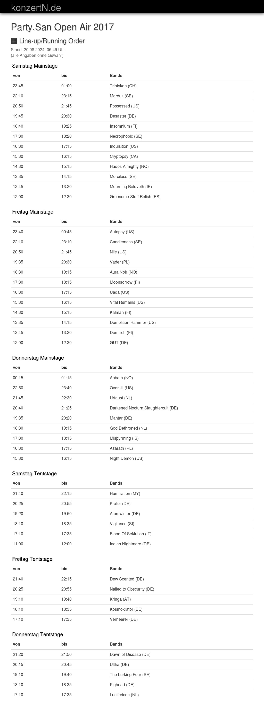 | 17:30 | 18:20 | Necrophobic (SE) | |