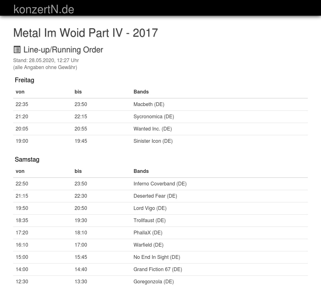 | 22:50 | 23:50 | Inferno Coverband (DE) | |