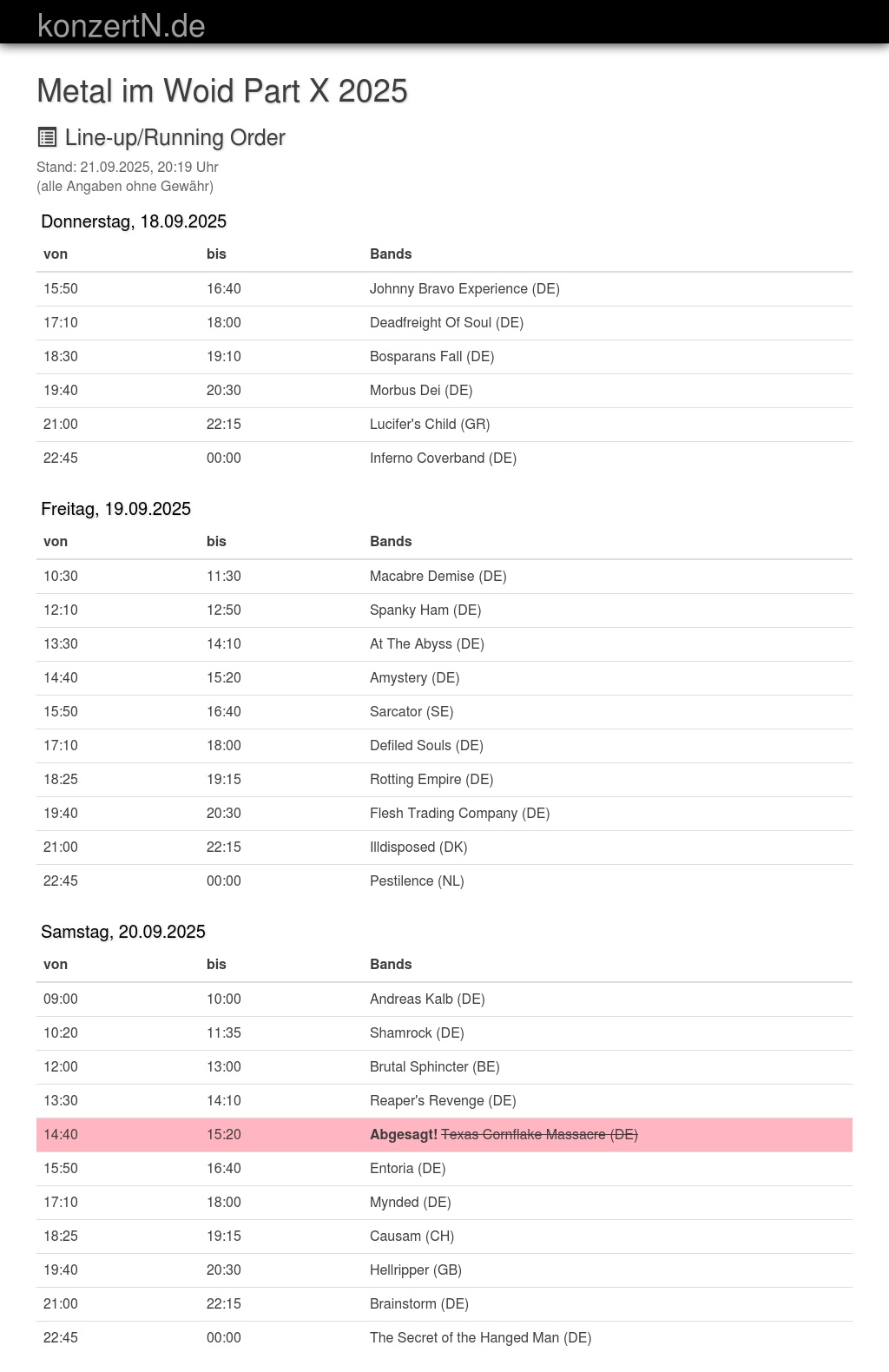 | 14:40 | 15:20 | Abgesagt! Texas Cornflake Massacre (DE) | |