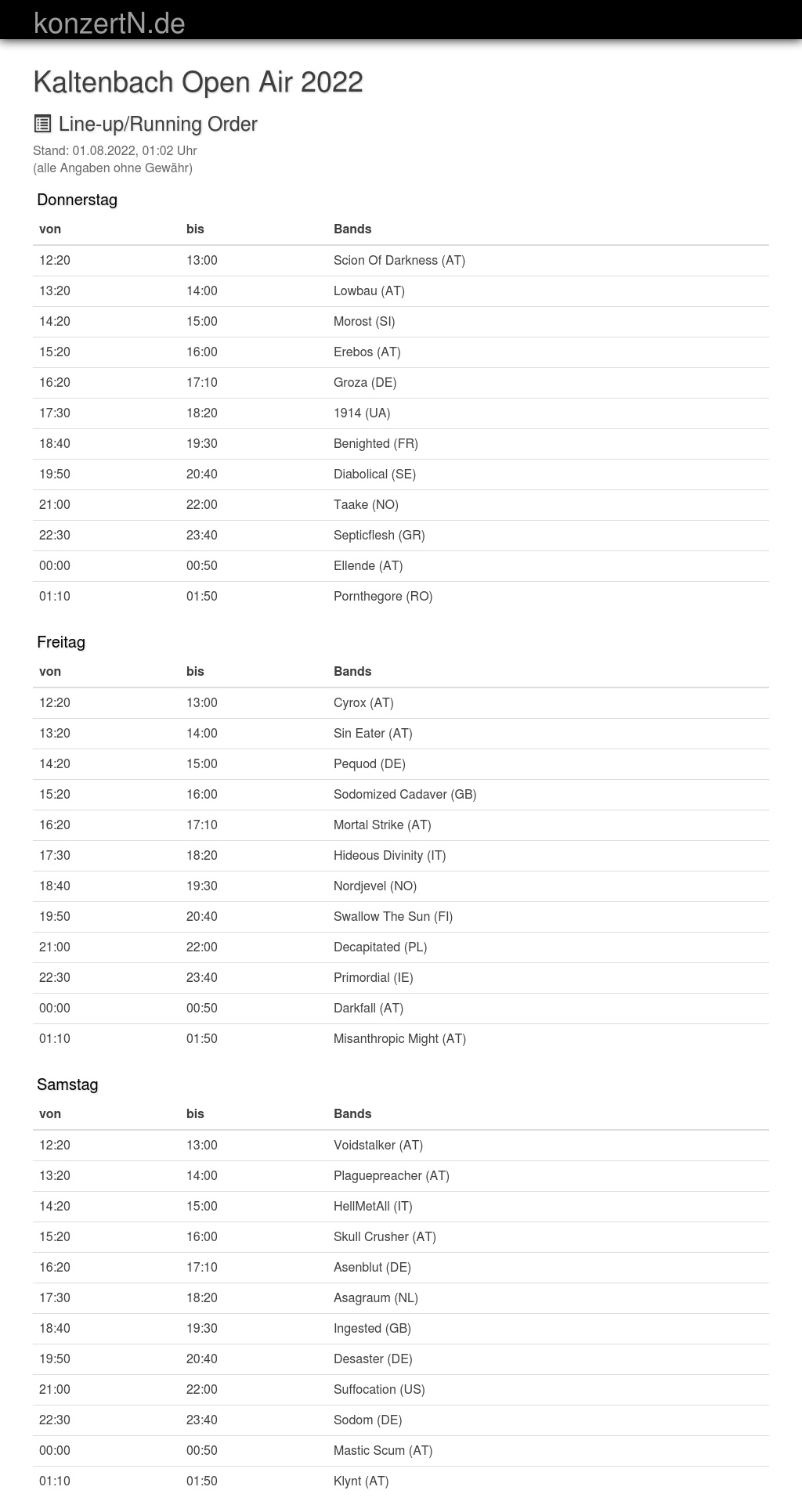 | 13:20 | 14:00 | Plaguepreacher (AT) | |