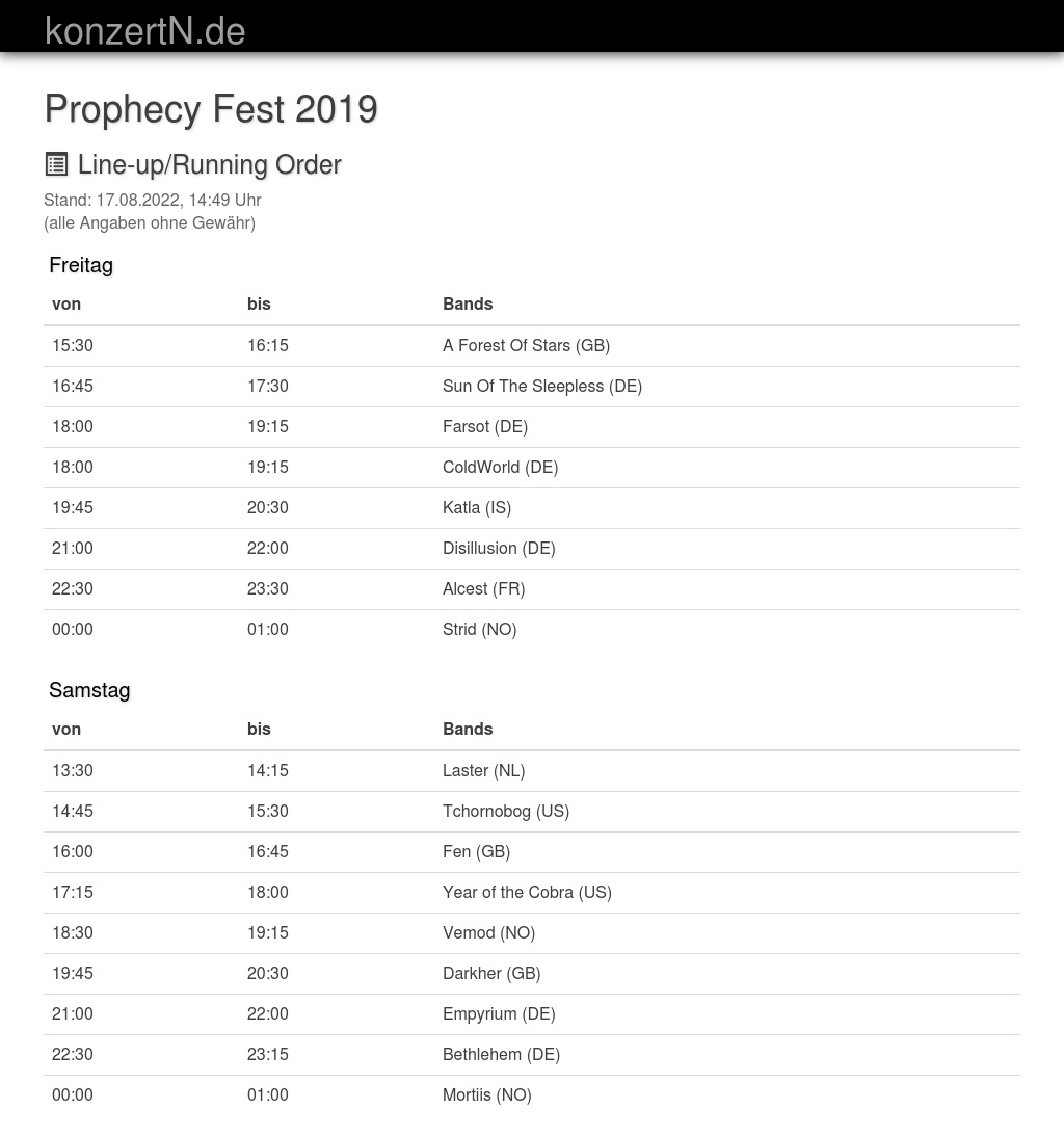 Prophecy Fest 2019 Timetable