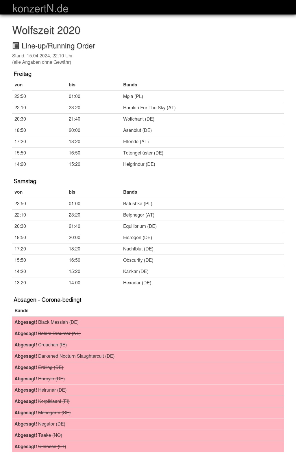 | 20:30 | 21:40 | Wolfchant (DE) | |