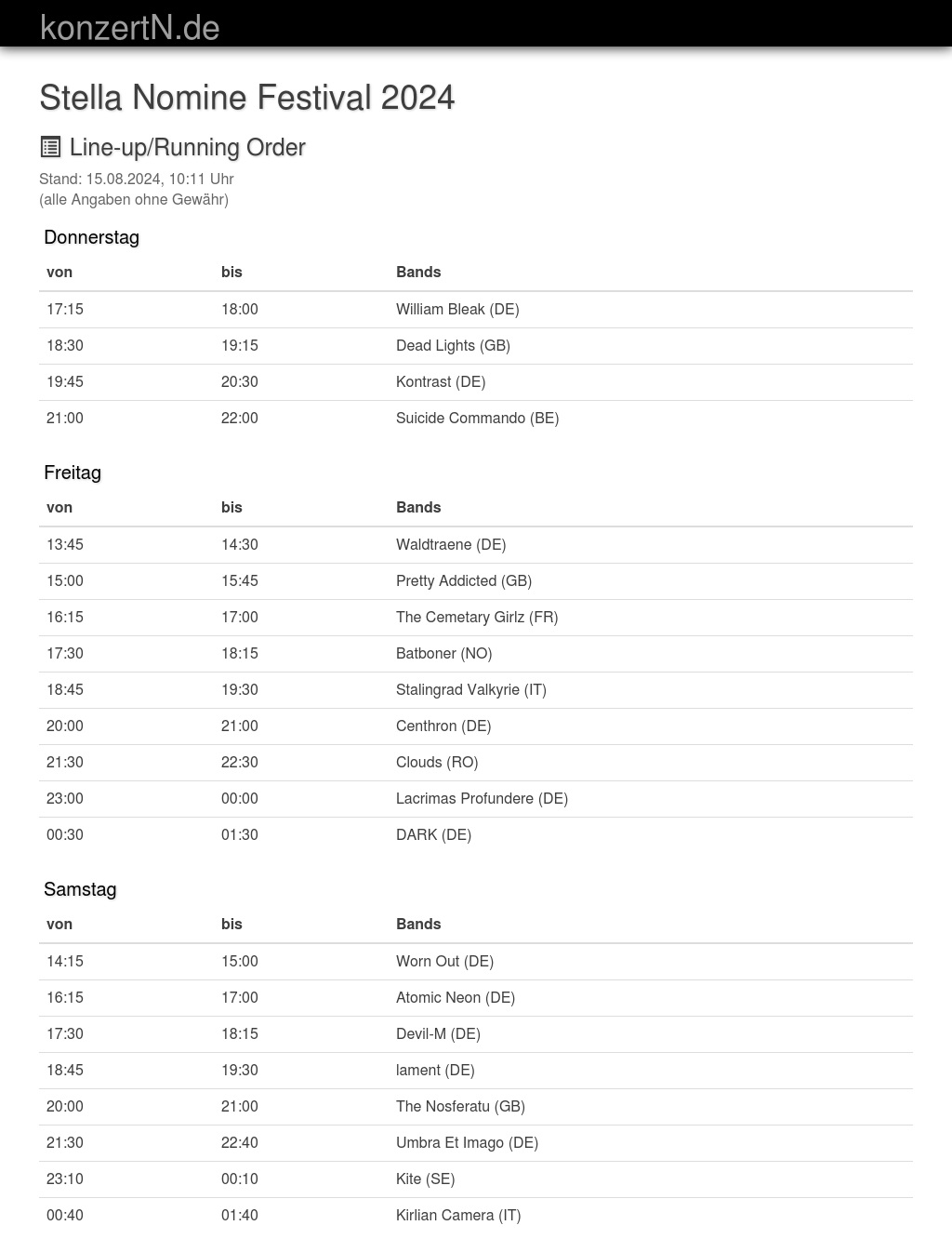 | 18:45 | 19:30 | lament (DE) | |