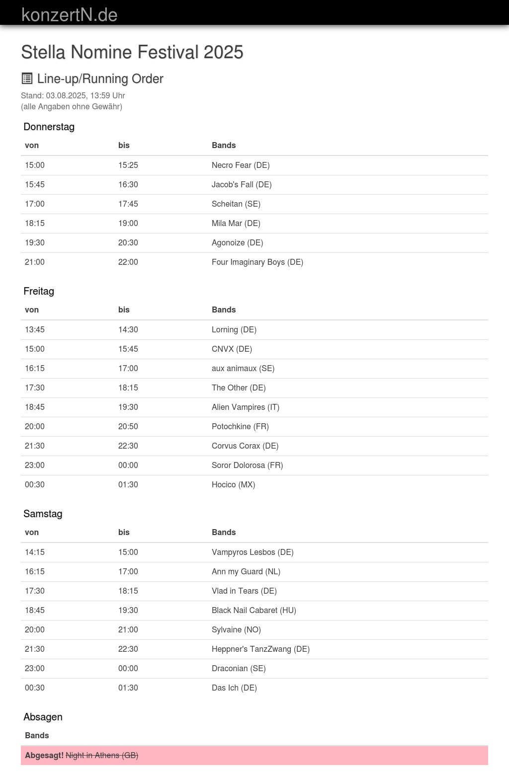 | 15:00 | 15:25 | Necro Fear (DE) | |