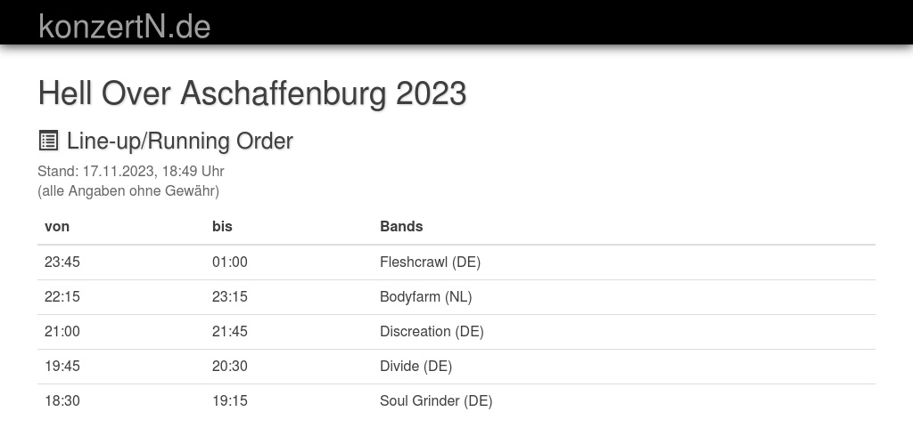 | 18:30 | 19:15 | Soul Grinder (DE) |