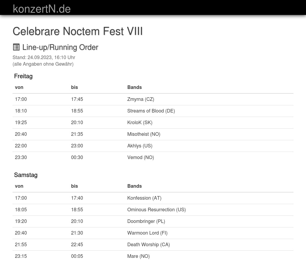 | 20:40 | 21:35 | Misotheist (NO) | |