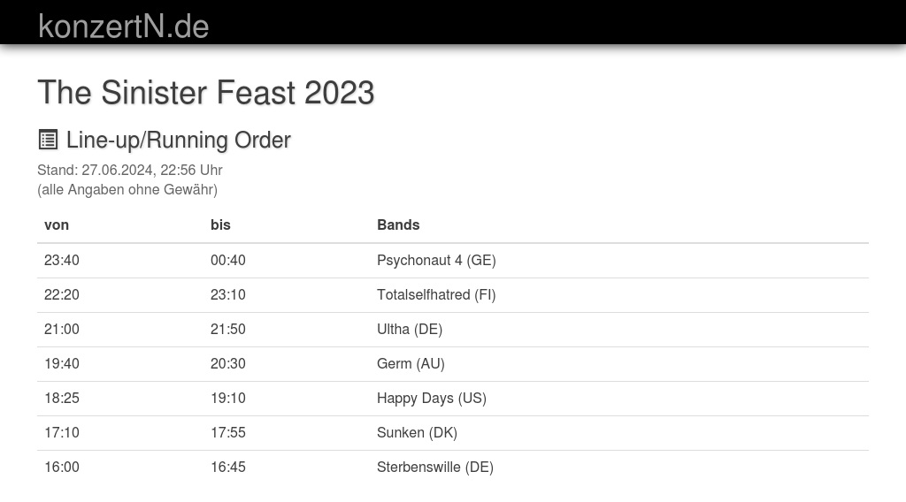 | 16:00 | 16:45 | Sterbenswille (DE) |