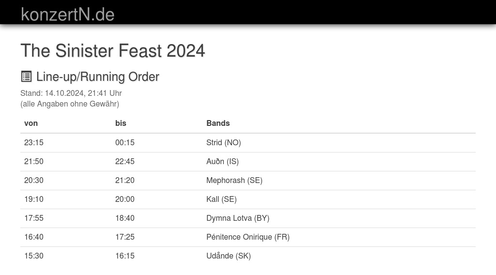 | 20:30 | 21:20 | Mephorash (SE) | |