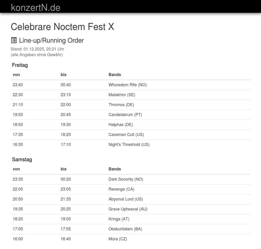 | 23:35 | 00:20 | Dark Sonority (NO) | |