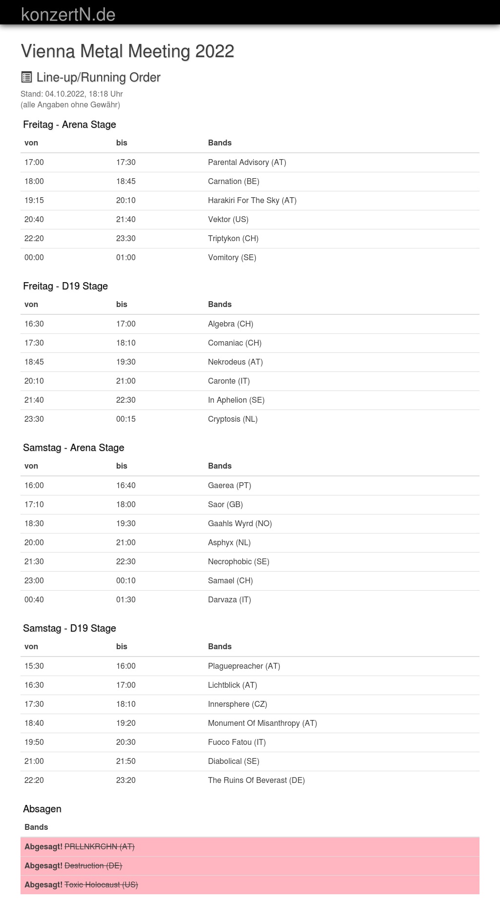 | 18:45 | 19:30 | Nekrodeus (AT) | |