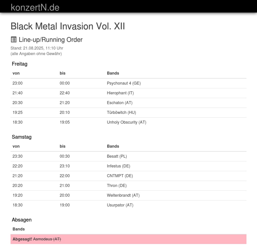 | 22:20 | 23:10 | Infestus (DE) | |