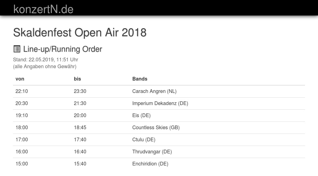 | 20:30 | 21:30 | Imperium Dekadenz (DE) | |