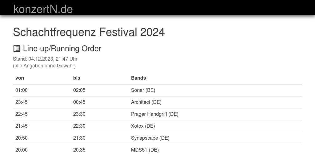| 22:45 | 23:30 | Prager Handgriff (DE) | |